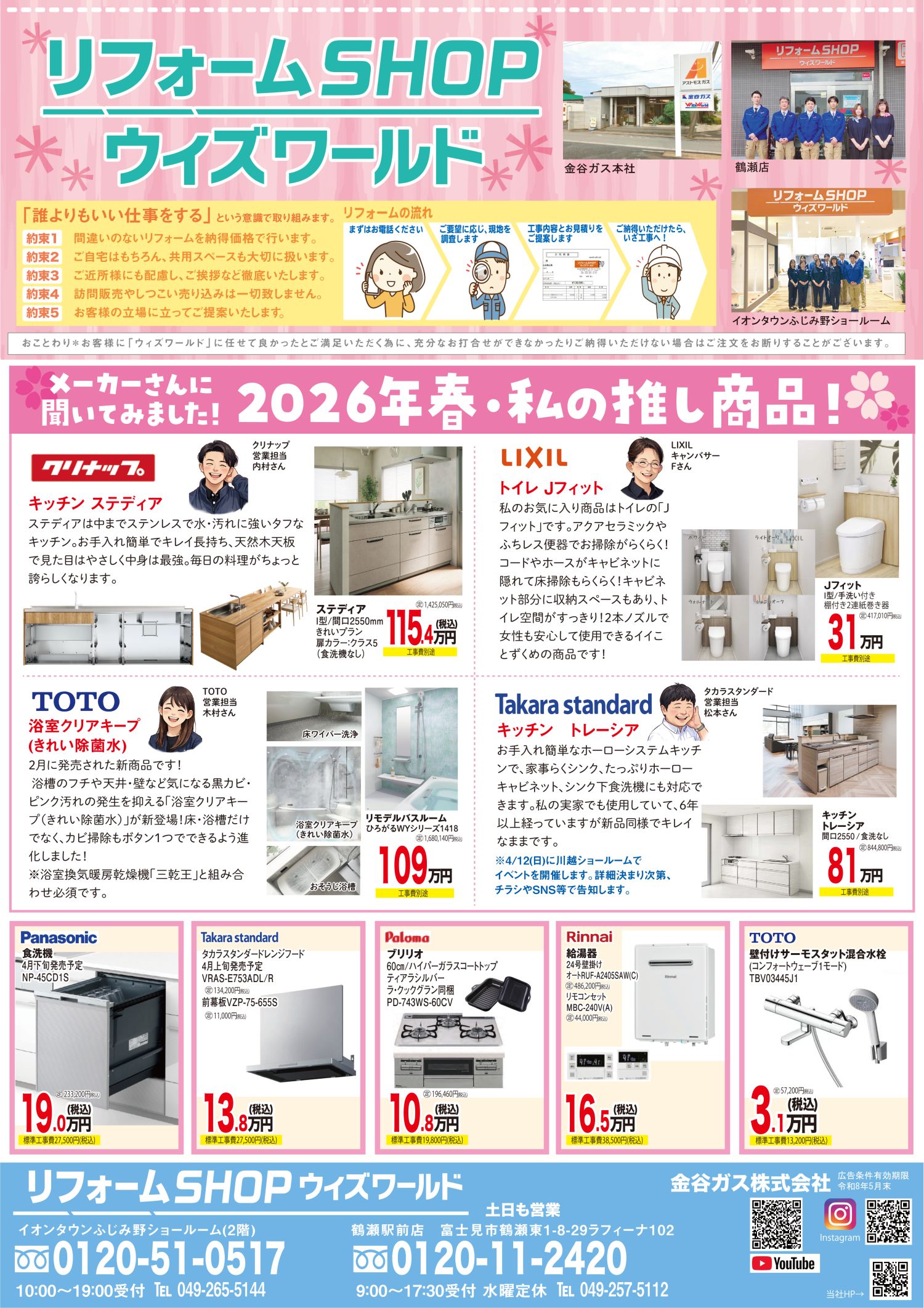 当店では、タカラスタンダードと協力して、春の家事らくフェアを開催します。